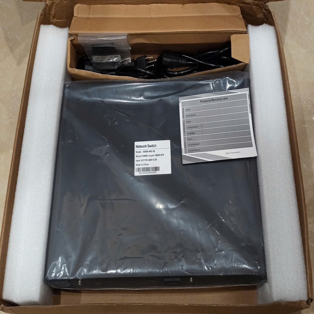 - Cung cấp 48 cổng RJ45 10/100/1000Base-T + 2 khe cắm cổng quang SFP 1000Base-X