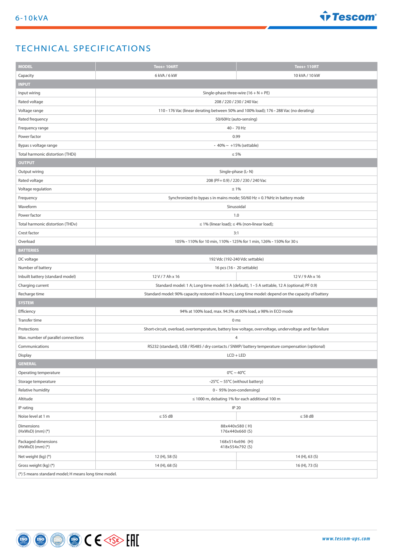 Bộ lưu điện UPS Tescom TEOS+ 100RT 6-10kVA