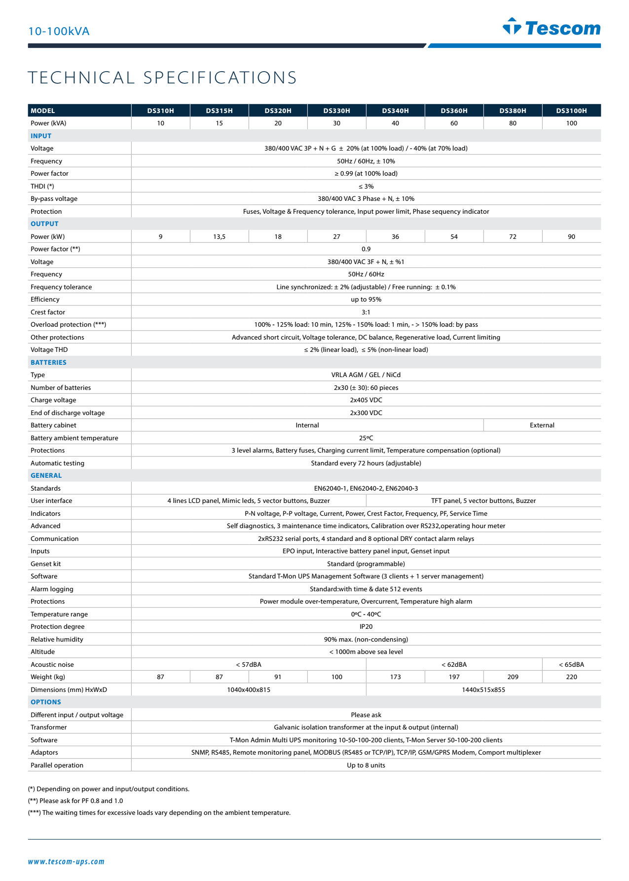 Bộ lưu điện UPS 3/3 phase Tescom 15kVA DS315H