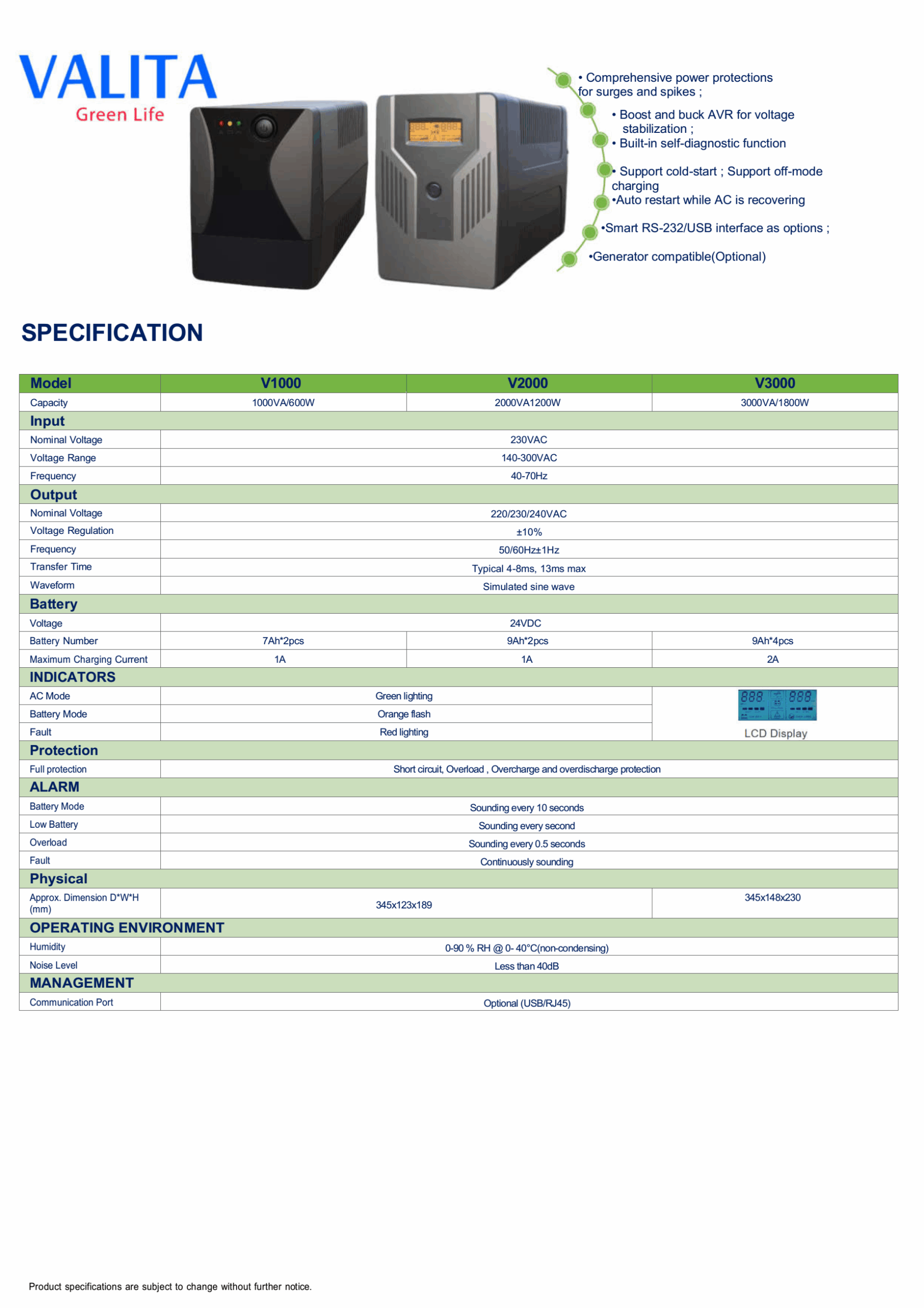 VALITA V1000 Bộ lưu điện UPS 3kva (2000VA) mẫu bộ lưu điện mới nhất của VALITA