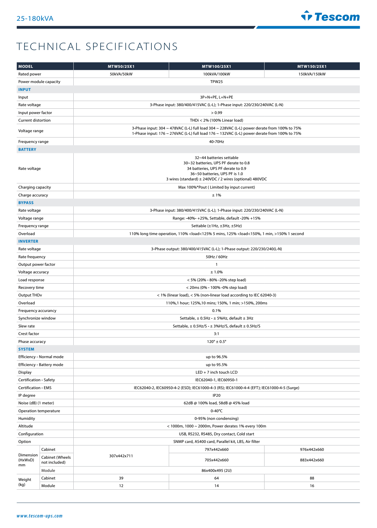 UPS – Mô đun 25 -180kVA Tescom MTW Modular